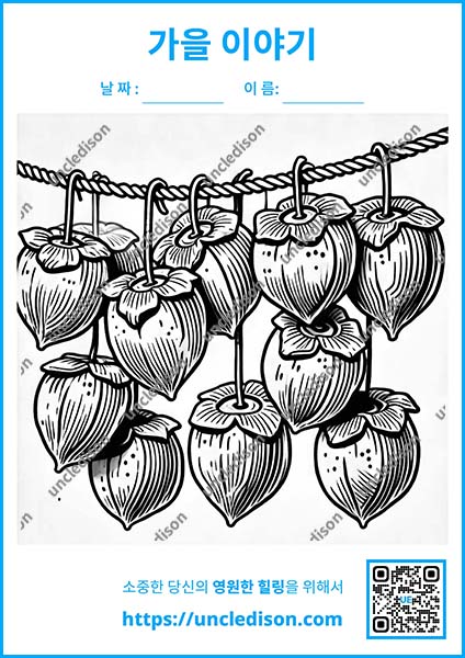 - 줄에 걸린 곶감 추억 속 고향의 맛, 곶감이 줄에 걸려 있는 정겨운 모습을 담았습니다.