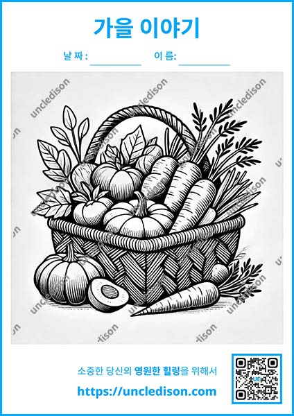 풍성한 수확과 아름다운 단풍의 계절, 가을이 찾아왔습니다. 이 특별한 계절의 정취를 담아 10가지의 가을 테마 색칠도안을 준비했습니다. 각 도안에는 가을의 독특한 매력이 깃들어 있어, 색칠하는 동안 가을의 아름다움을 온전히 느낄 수 있을 것입니다.