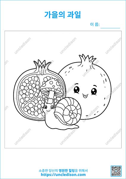 - 석류와 달팽이: 석류의 알갱이까지 상상하며 칠해보고, 달팽이의 등껍질을 무지개색으로 칠해보는 건 어떨까요?