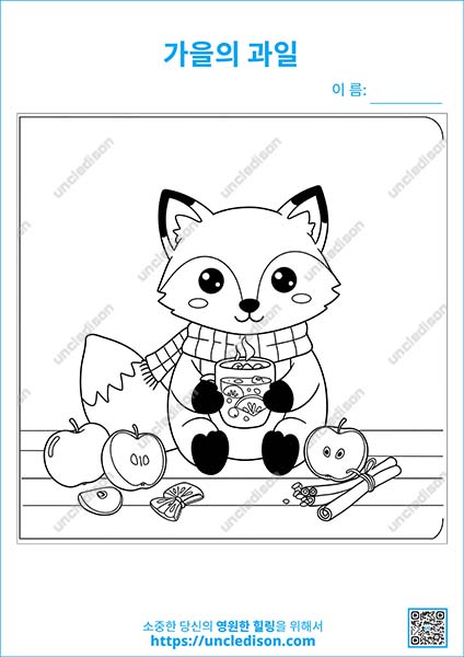 - 사과차 마시는 여우: 따뜻한 차 한 잔이 생각나는 계절! 여우와 함께 차를 마시며 포근한 가을을 느껴봐요.