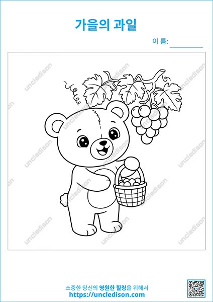- 포도밭 곰돌이: 곰돌이가 포도를 잔뜩 따고 있네요! 포도 알 하나하나 색칠하는 재미에 푹 빠질 거예요.
