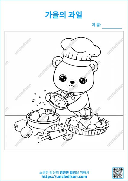 - 파이 만드는 곰돌이: 뚝딱뚝딱 맛있는 파이를 만드는 곰돌이! 색칠이 끝나면 "엄마, 우리도 파이 만들자!" 하는 소리가 나올지도 몰라요. 🥧