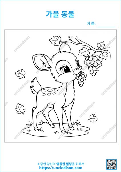 🦌 마지막 열 번째 도안은 달콤한 포도를 먹고 있는 온화한 아기 사슴이에요. 사슴의 부드러운 눈빛을 보며 마음까지 따뜻해지는 시간을 가질 수 있답니다.