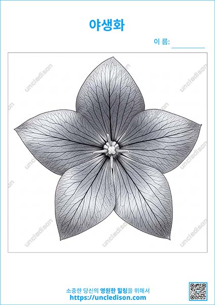 - 도라지: 꽃봉오리가 마치 풍선처럼 부풀어 올랐다가 활짝 피어나 별 모양을 만드는 독특한 꽃이죠. 청보라색이 흔하고 흰색도 있어요. 뿌리는 우리 식탁과 약재로도 귀하게 쓰이는 친숙한 꽃이랍니다.