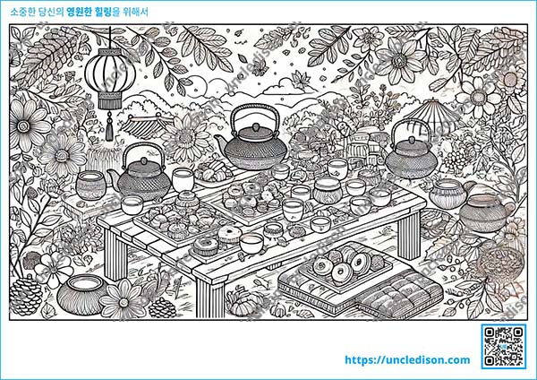 꽃을 든 여인 한복 컬러링 색칠하기 색칠공부도안 유아 어르신 노인 시니어 프린트 인지프