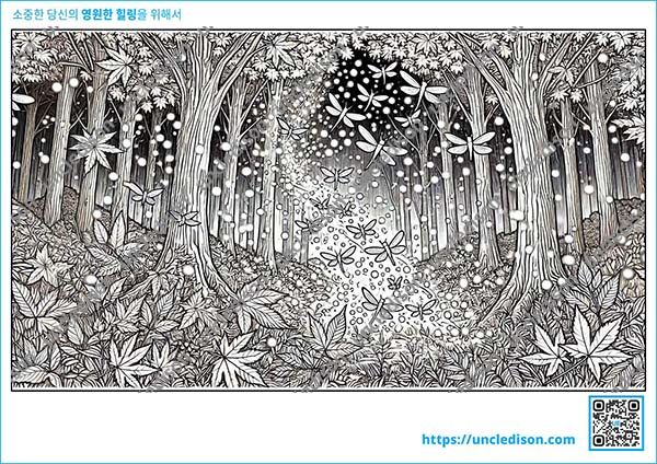 밤이 되면 더욱 환상적인 풍경이 펼쳐져요. '반딧불이 단풍숲'을 상상해보세요. 깊은 가을밤, 수천 마리의 반딧불이가 단풍숲을 밝히는 거예요. 마치 숲 전체가 빛의 물결에 휩싸인 것처럼 보일 거예요.