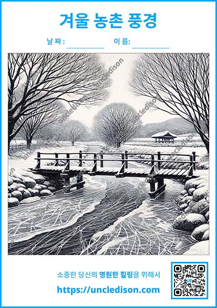 이 색칠도안으로 추억 속 겨울 시골 풍경을 하나하나 색칠하면서, 따뜻했던 그 시절로 잠시 여행을 떠나보는 건 어떨까요? 여러분만의 색으로 채워가는 아름다운 추억 여행이 되길 바라요! 🎨✨