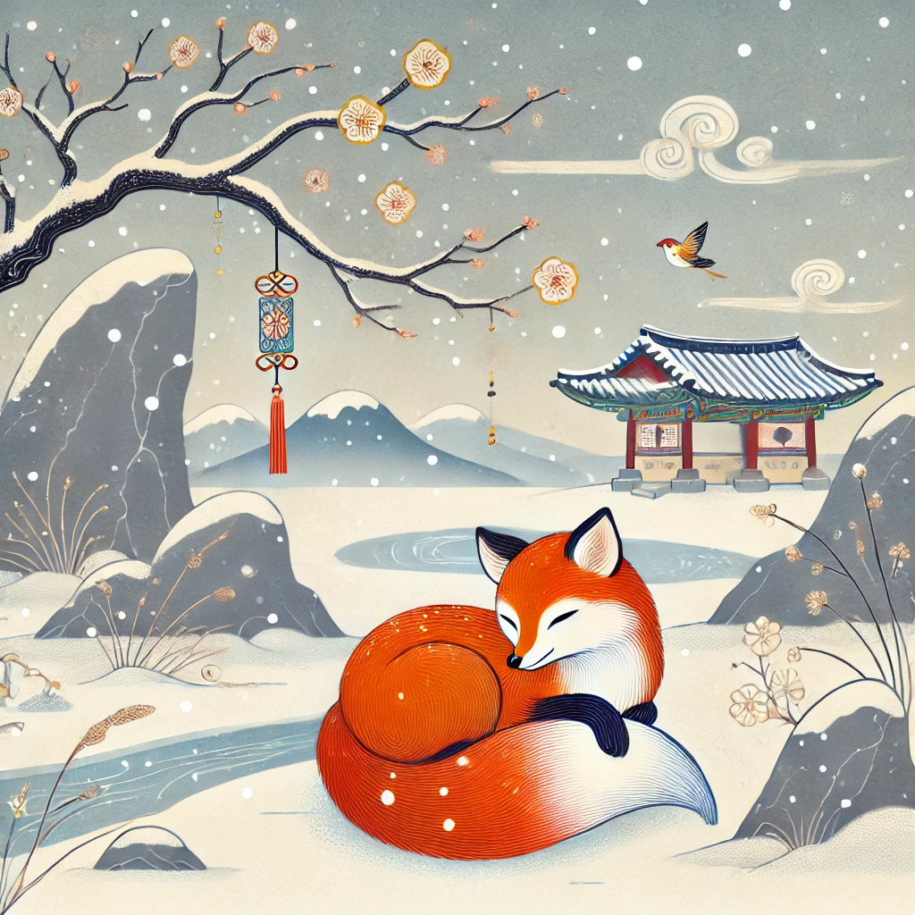 여러분의 마음을 따뜻하게 해줄 민화 스타일의 겨울 동물 그림을 소개해드릴게요! 🖌️❄️