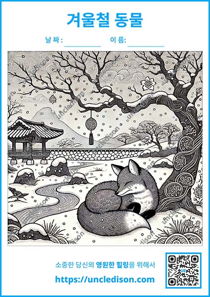 이 아름다운 겨울 동물 민화들은 우리의 전통적인 미감과 자연의 고요함을 담아내고 있어요. 각각의 작품이 가진 여백과 구도를 살려 색칠하면서, 한국적인 겨울의 아름다움을 느껴보는 건 어떨까요? 🎨✨