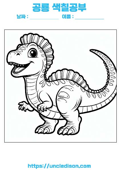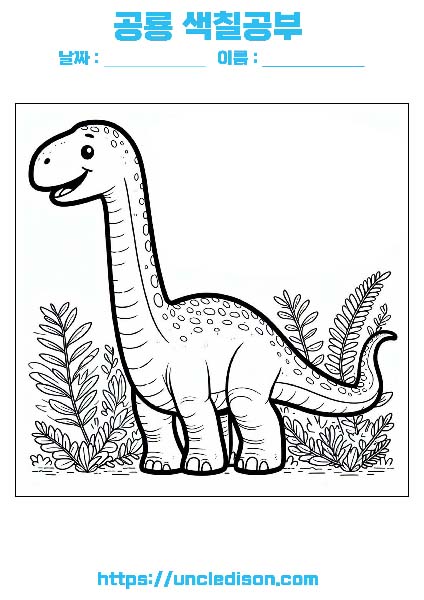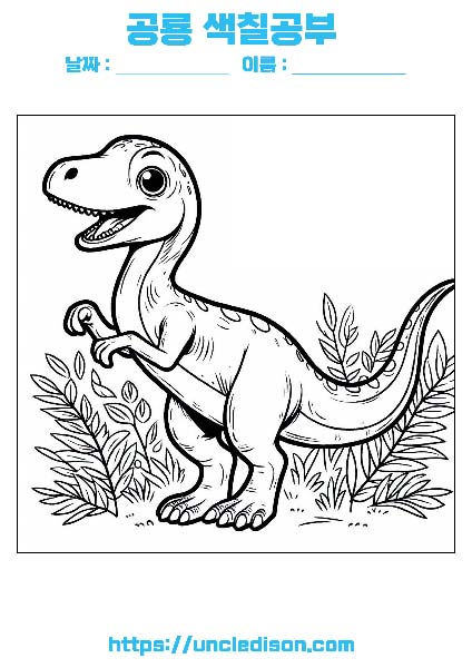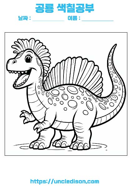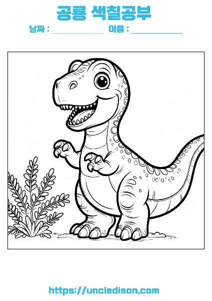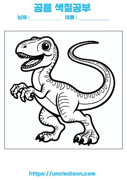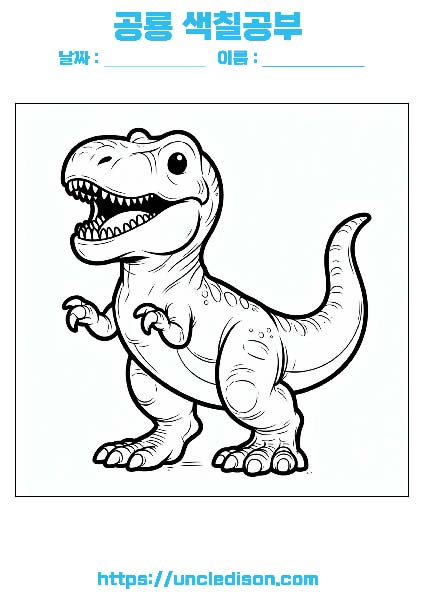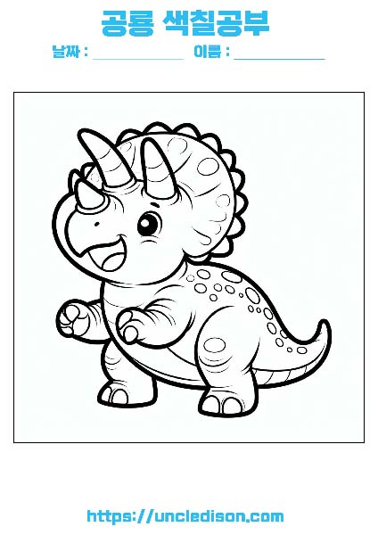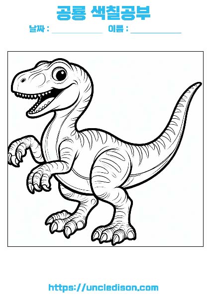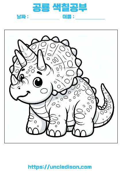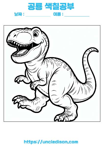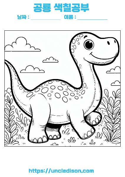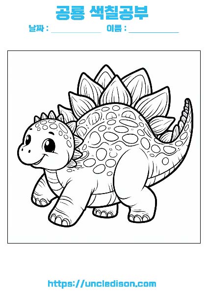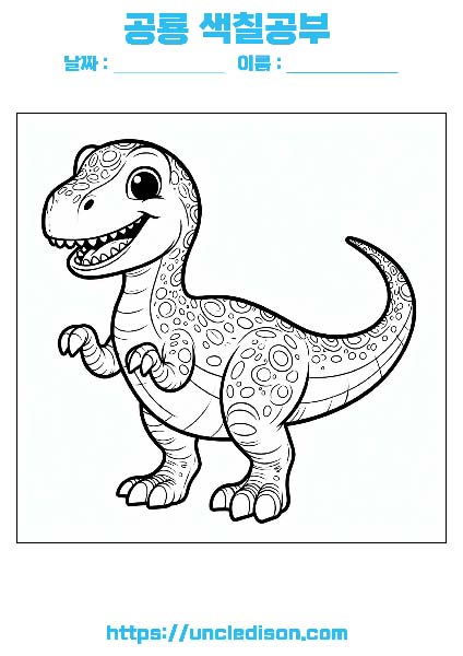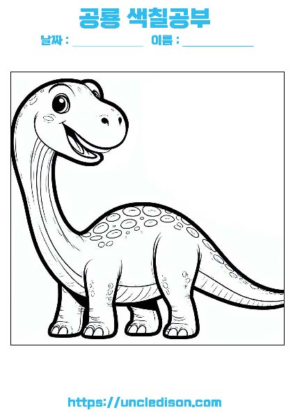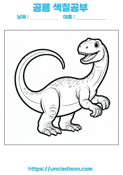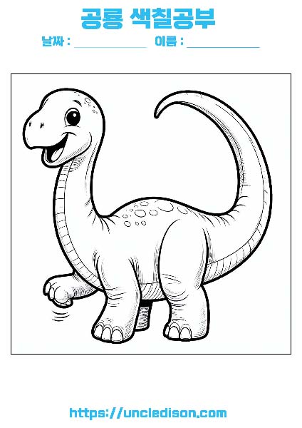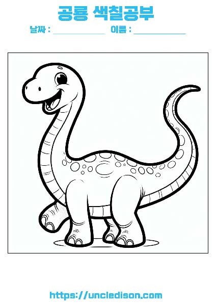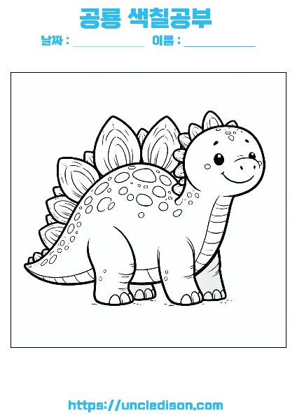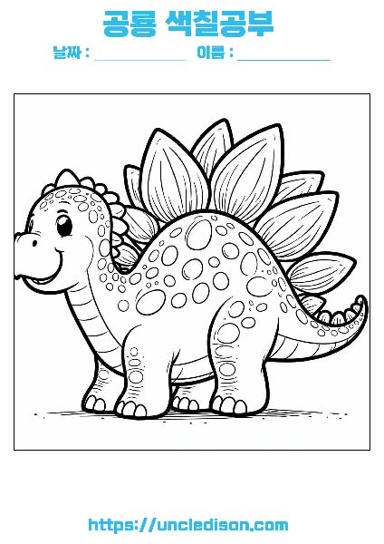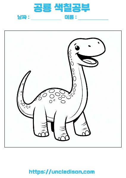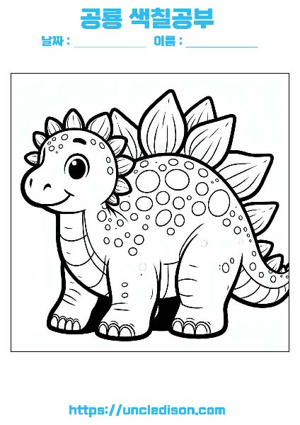 귀여운 공룡 색칠공부도안 색칠하기 컬러링 어른 색칠공부 도안 유아 어르신 노인 성인 시니어 무료 프린트 인지프로그램 치매예방 활동지