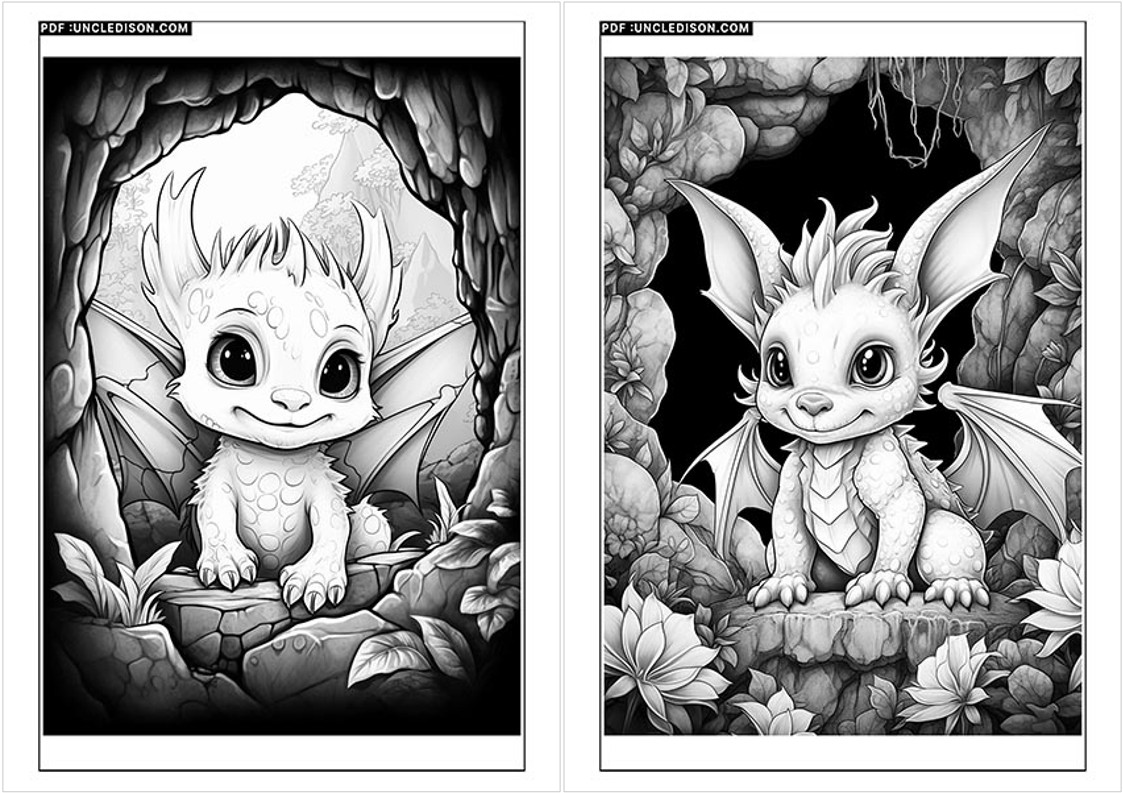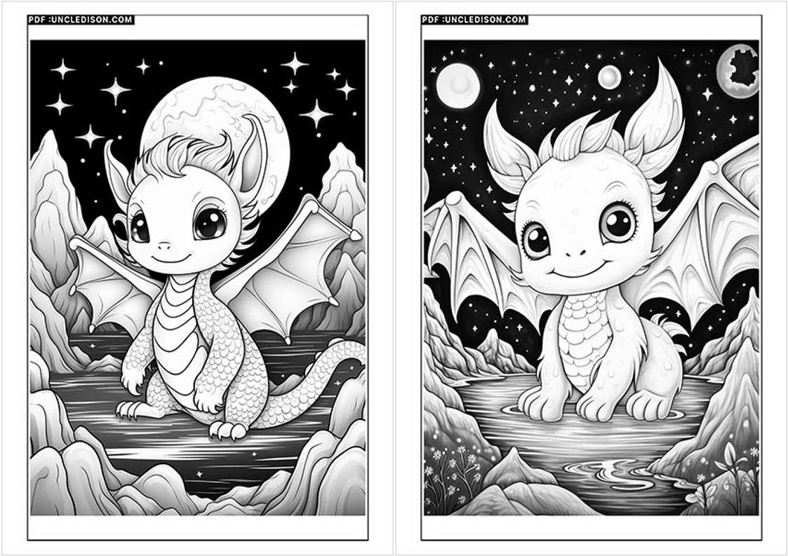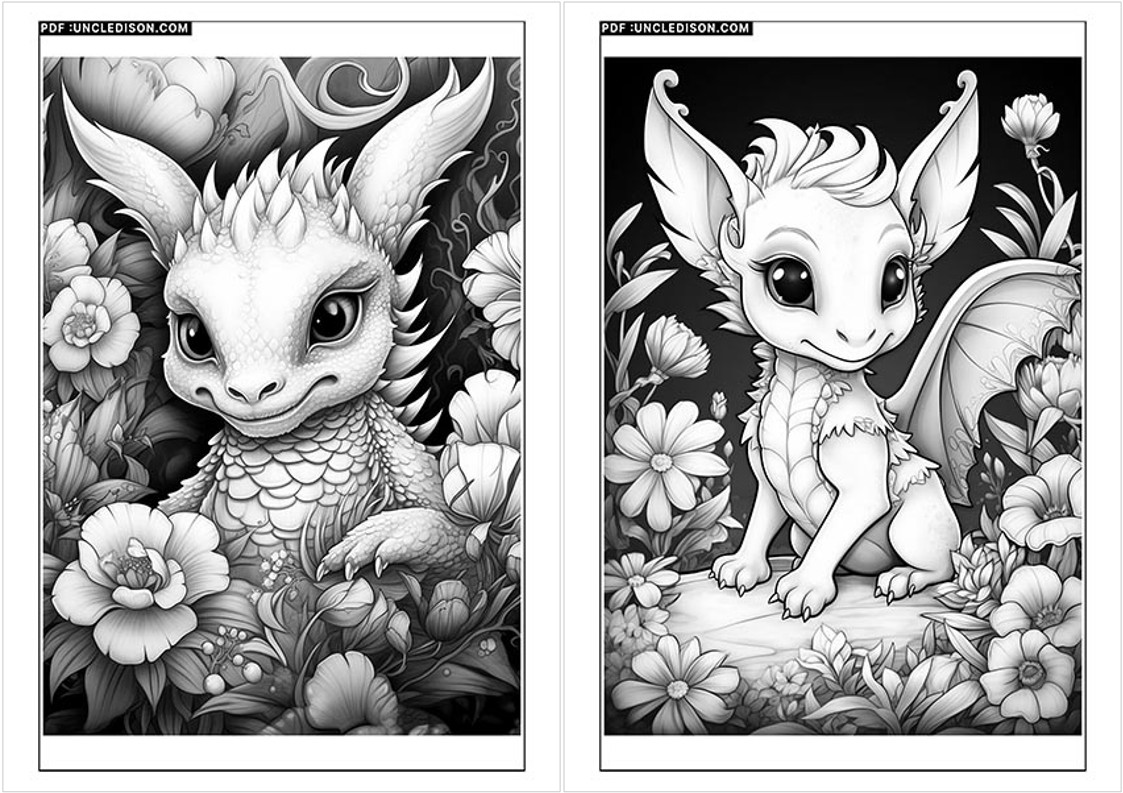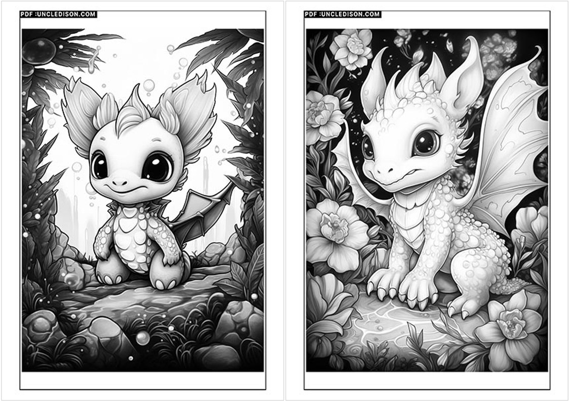 이 도안은 귀여운 용의 모험을 그린 작품으로, 용이 특유의 큰 눈, 작은 날개, 그리고 꼬리의 재미있는 형상이 살아 숨쉬고 있습니다. 여러분은 이 작은 용과 함께 여행하며 색을 입혀, 자신만의 독특한 용의 세계를 창조해낼 수 있습니다.