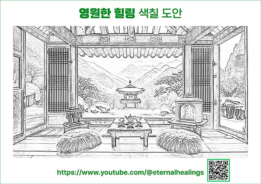색칠공부도안 컬러링 겨울 시골 초가집 협동화 이미지 색칠하기 프린트 무료다운 어르신 노인
