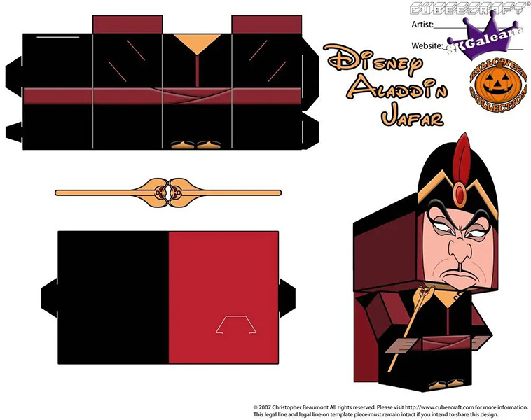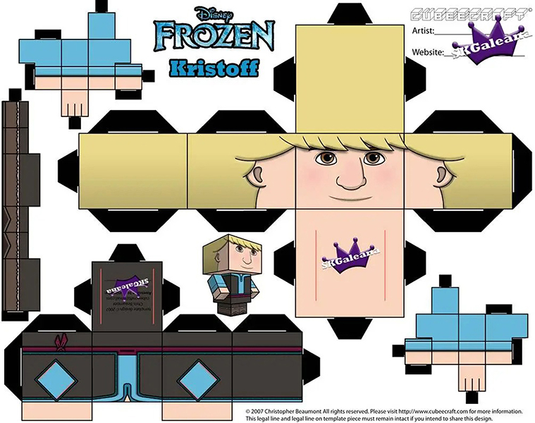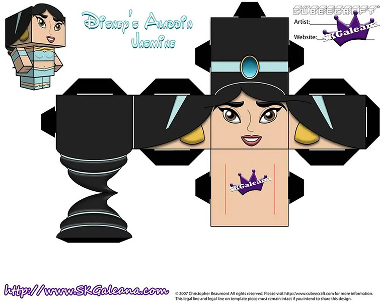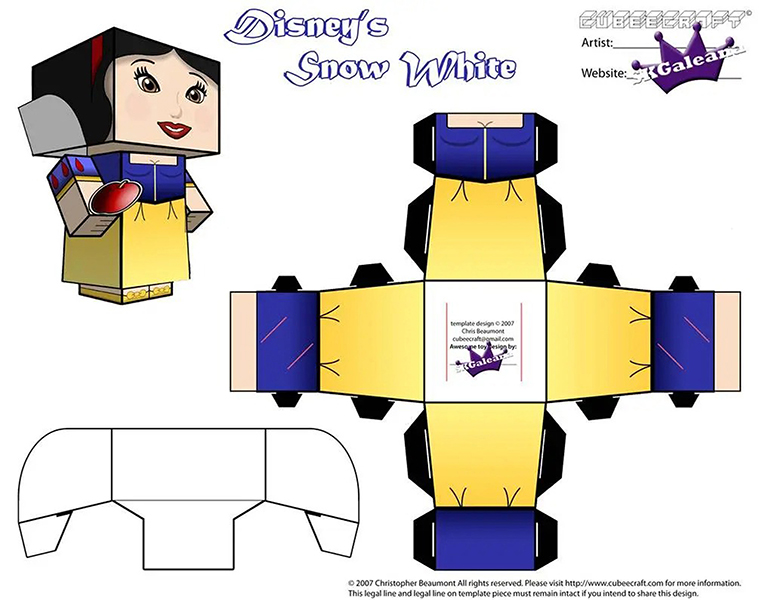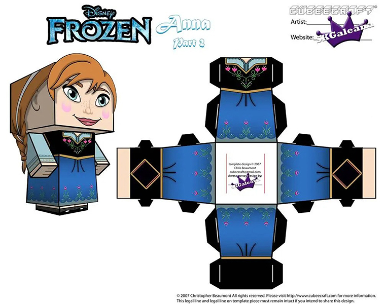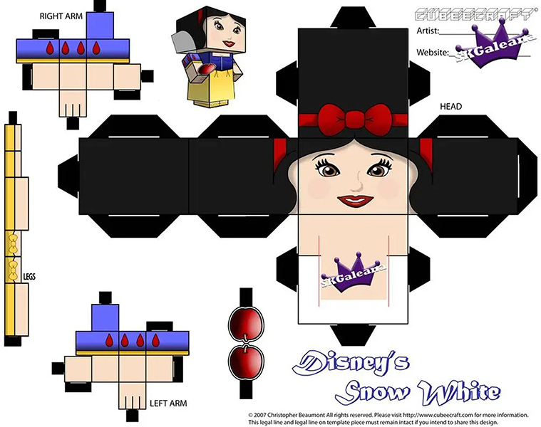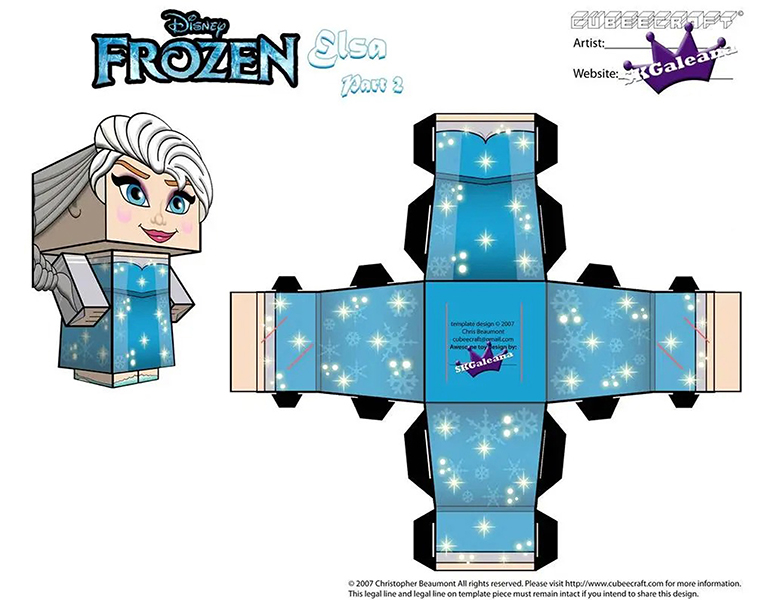 디즈니 페이퍼크래프트 도안에는 엘사, 안나, 크리스토퍼, 올라프, 백설공주, 마녀, 자스민, 알라딘, 자파, 인어공주, 우르슬라, 신데렐라, 벨공주, 야수, 라푼젤, 유진이 포함되어 있습니다.