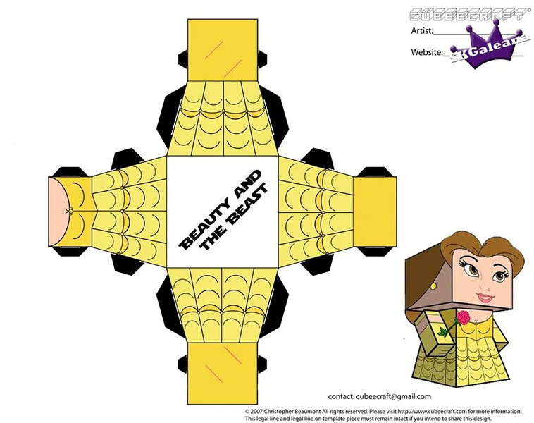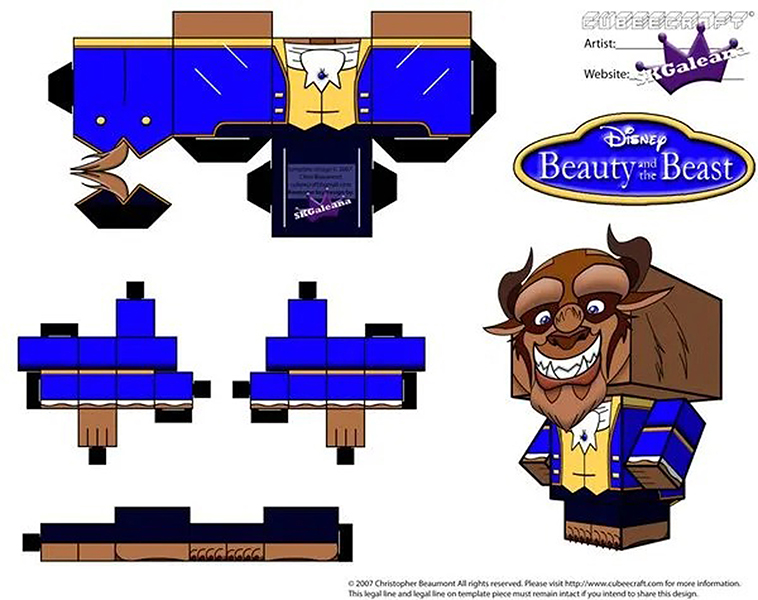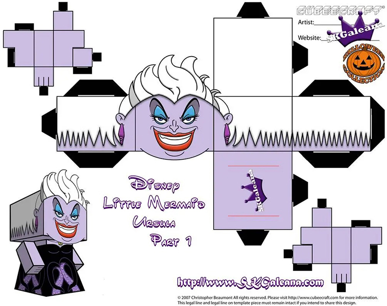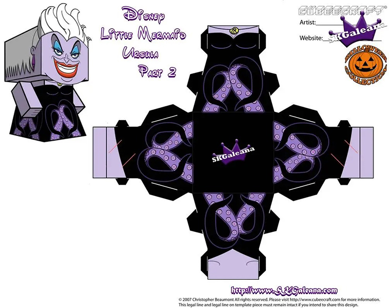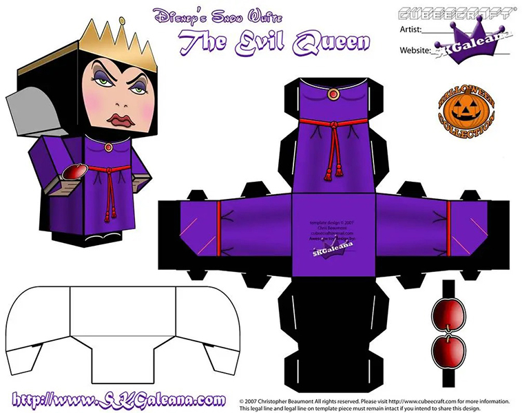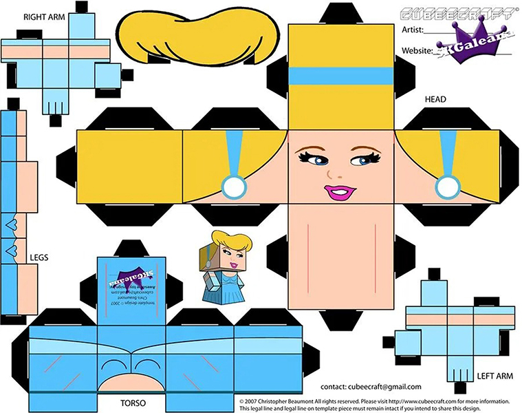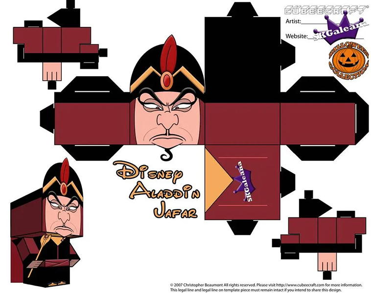 디즈니 페이퍼크래프트 도안에는 엘사, 안나, 크리스토퍼, 올라프, 백설공주, 마녀, 자스민, 알라딘, 자파, 인어공주, 우르슬라, 신데렐라, 벨공주, 야수, 라푼젤, 유진이 포함되어 있습니다.