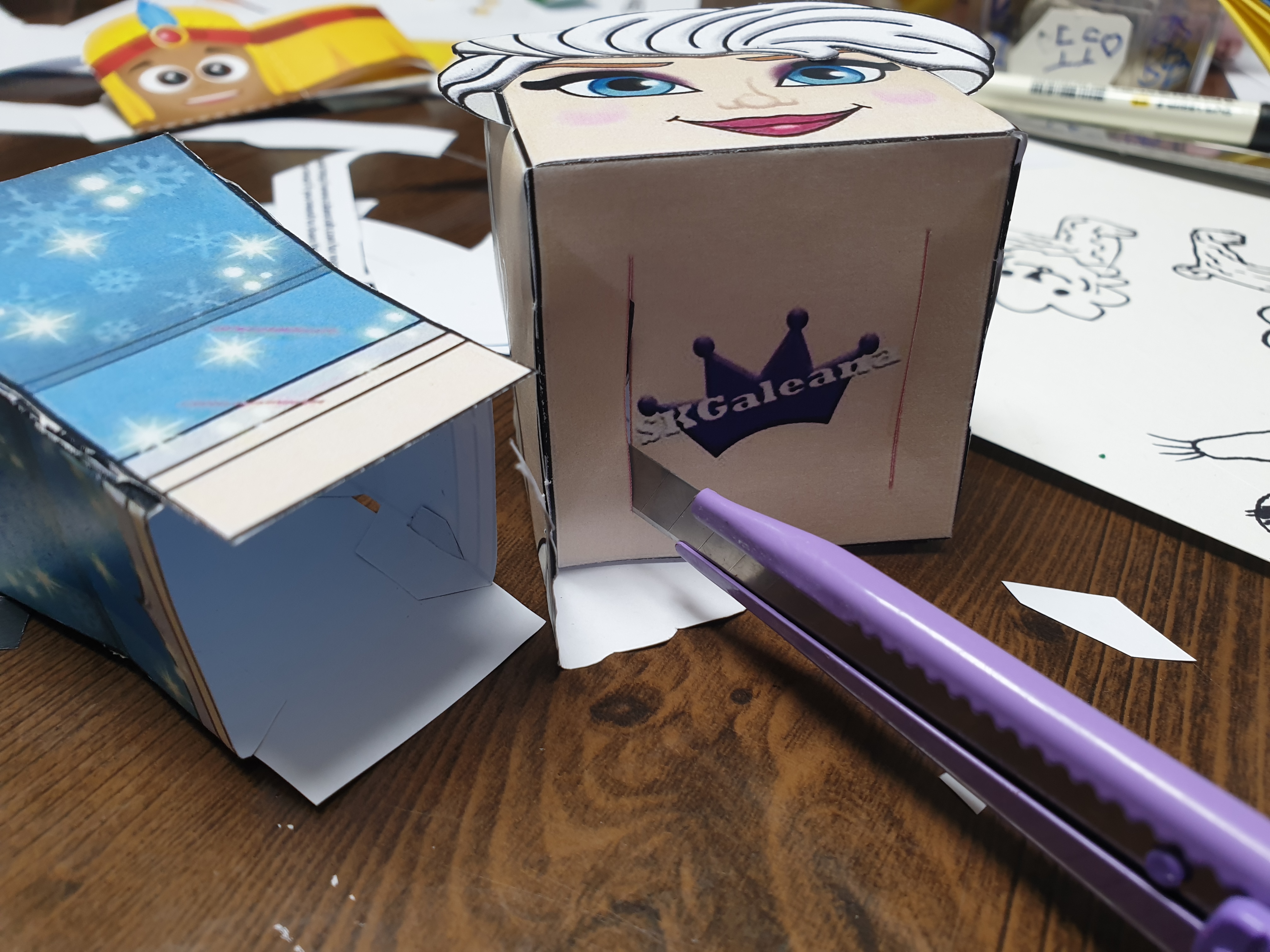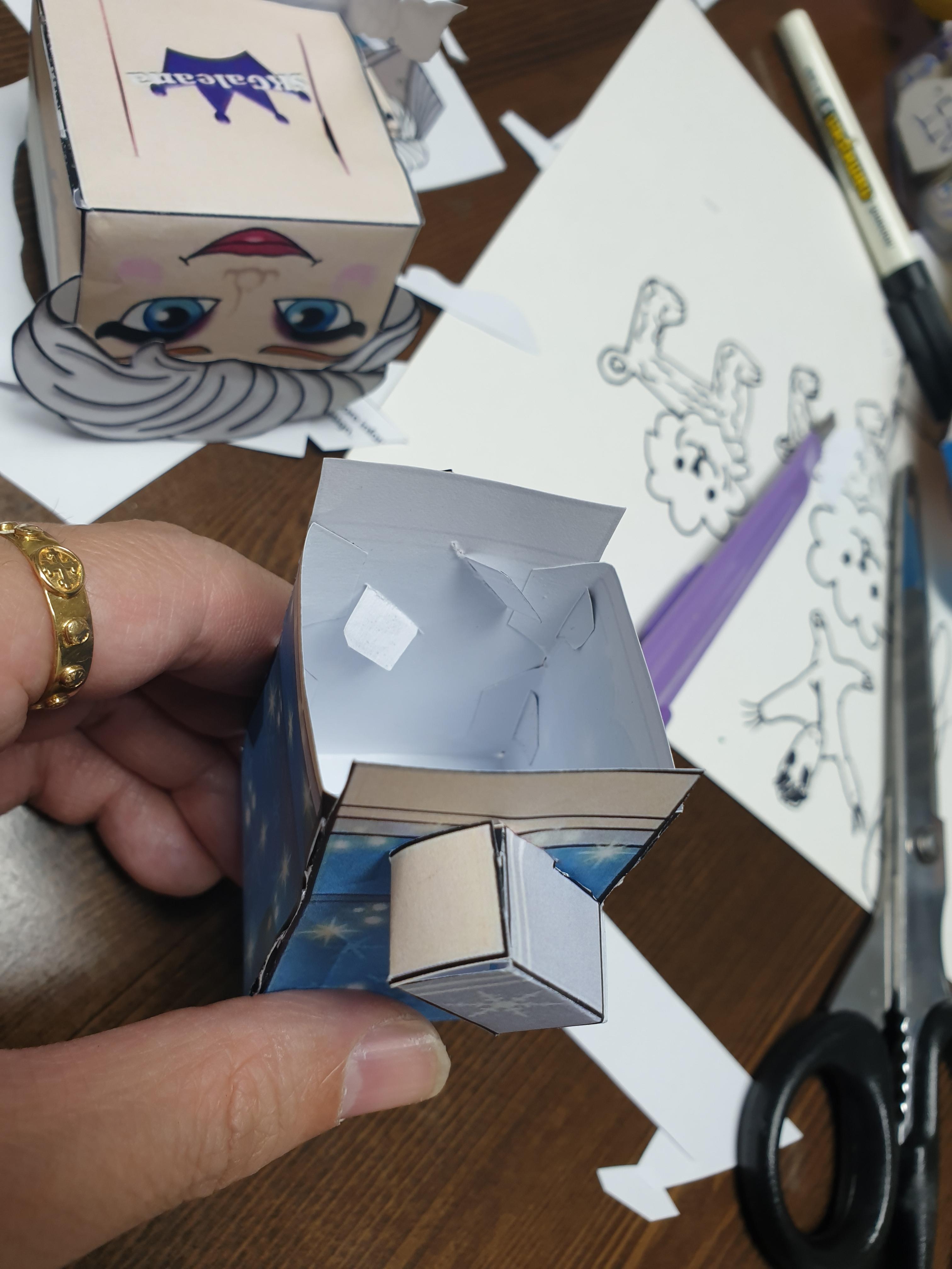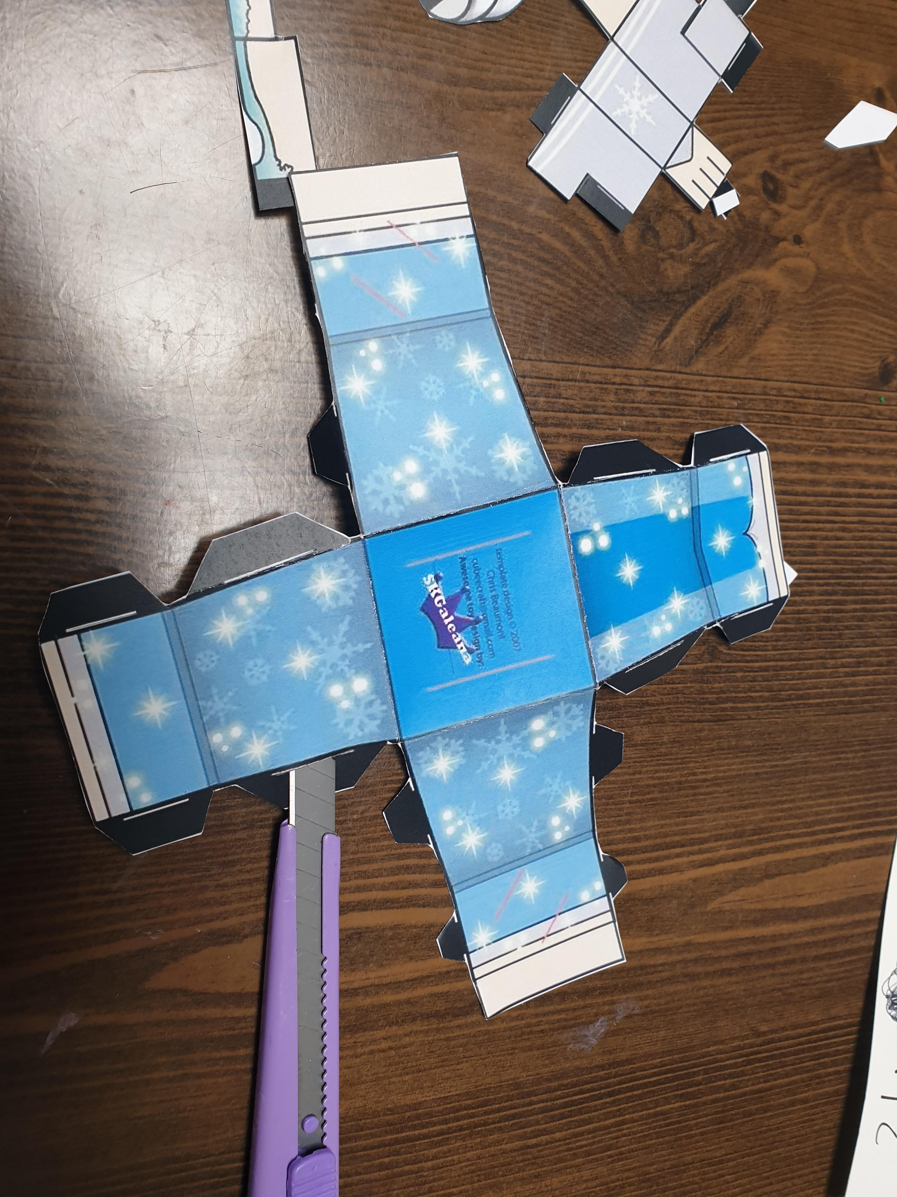 몸통 옆부분에도 칼로 잘라주셔야 합니다. 그래야 팔부분을 넣어서 조립할 수 있어요.