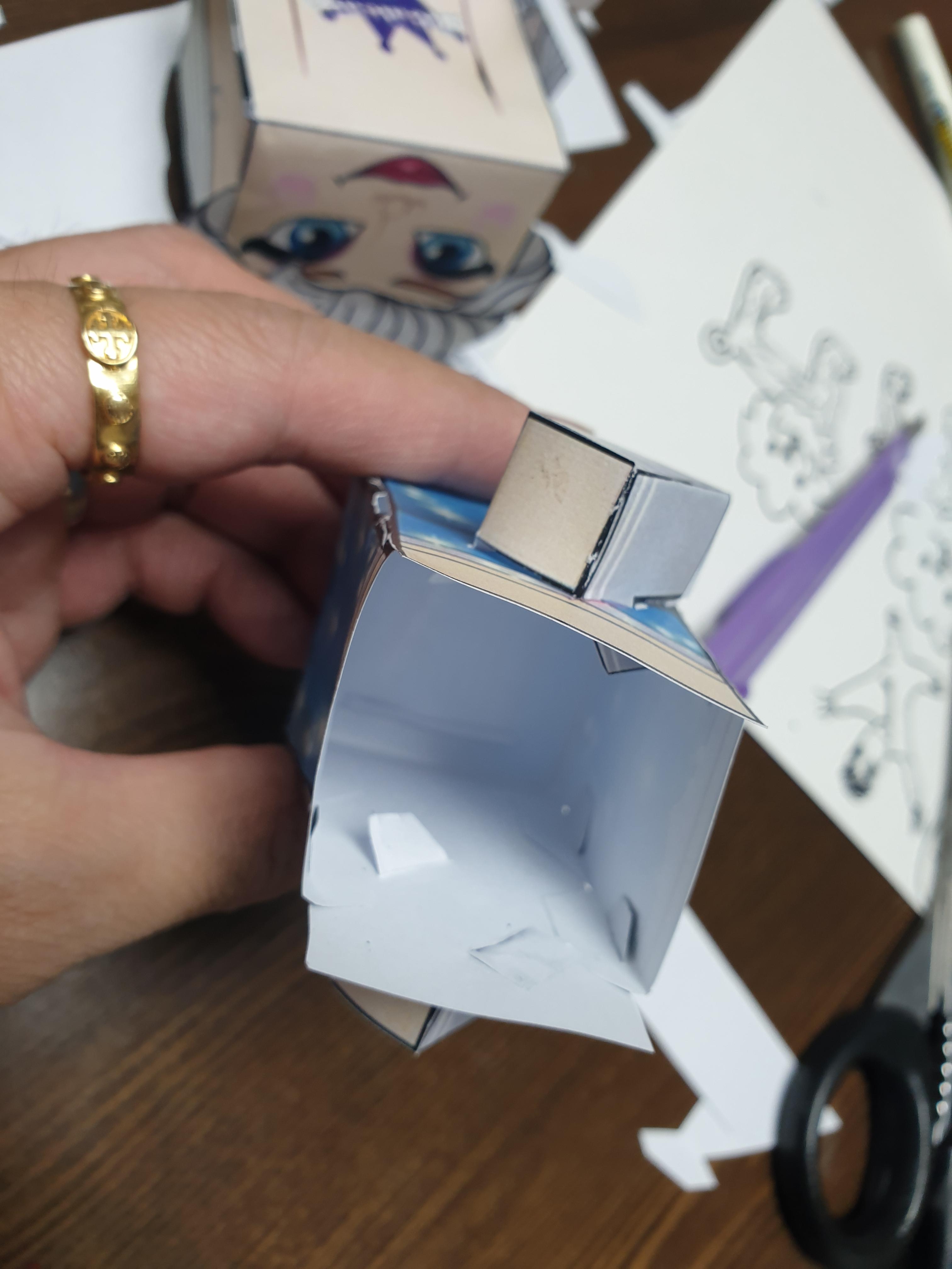 마지막으로 몸통부분을 머리부분에 삽입하면 종이인형이 완성됩니다.
