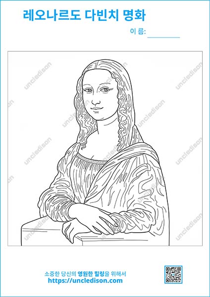 레오나르도 다빈치 명화 모나리자 색칠공부도안 컬러링북 색칠하기 색칠공부 유아 어르신 노인 시니어 인지프로그램 치매예방 활동지 무료