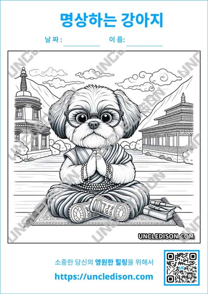 오늘은 특별한 주제로 여러분과 함께하려고 합니다. 바로 강아지들의 명상을 하는 모습을 담은 색칠 도안입니다. 각기 다른 강아지들이 승려 옷을 입고, 명상 자세로 마음의 평화를 찾는 모습을 상상해보세요. 이제 그 귀여운 강아지들을 하나씩 소개해드릴게요.