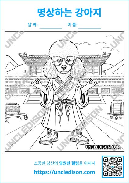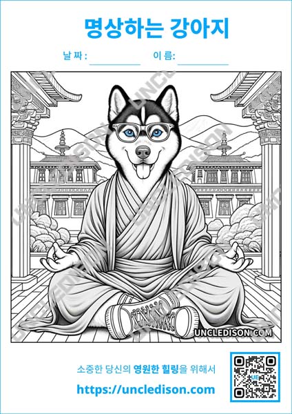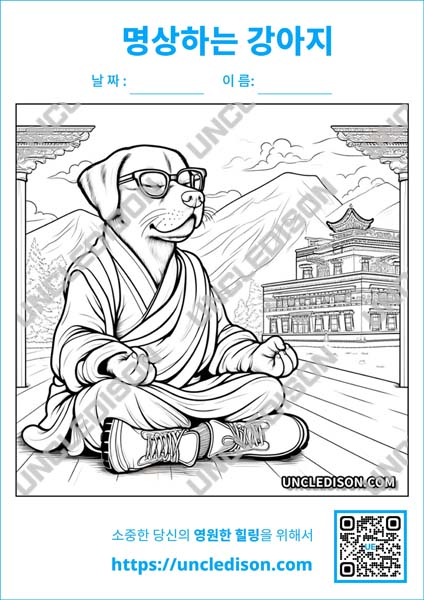 이렇게 다양한 강아지들이 사람처럼 명상을 하는 모습을 색칠하면서, 여러분도 마음의 평온함을 찾으실 수 있을 것입니다. 즐겁게 색칠하시고, 귀여운 강아지들과 함께하는 힐링 시간을 만끽하시길 바랍니다!