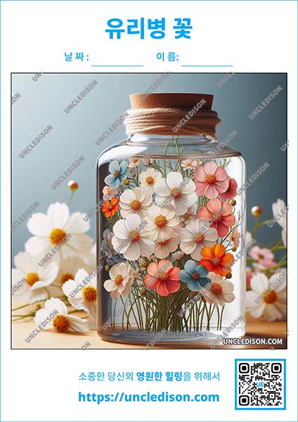 - 다이어리 꾸미기: 다이어리나 노트의 한 페이지를 유리병 속 꽃 일러스트로 꾸며 보세요. 매일매일의 기록이 더욱 즐거워질 것입니다.
