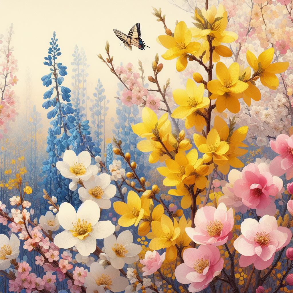개나리: 봄을 알리는 대표적인 꽃으로, 새로운 시작, 기대, 희망을 상징합니다. 노란색 개나리는 벚꽃보다 더 빨리 피며, 3월 15일 제주도를 시작으로 전국이 노란빛으로 물들 예정입니다. 개나리는 '나의 사랑은 당신만큼 밝다’는 의미도 담고 있습니다.