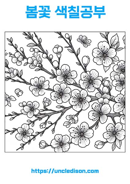 봄꽃 모음 개나리 목련 벚꽃 유채꽃 진달래 어른 색칠공부 도안 유아 어르신 노인 성인 시니어 PDF 무료 프린트 인지프로그램 치매예방