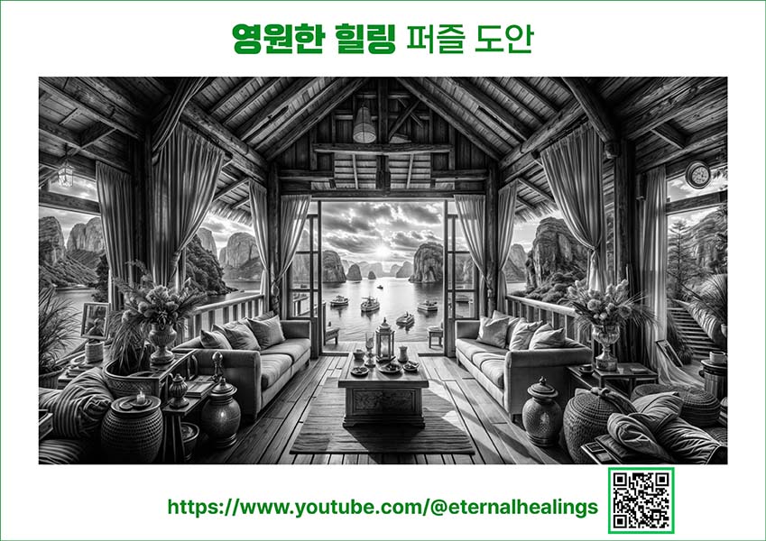 비내리는 베트남 하룽베이 하우스 퍼즐 게임 도안 색칠공부도안 이미지 그림 프린트 무료다운 어르신 노인 유아 인지프로그램 치매예방