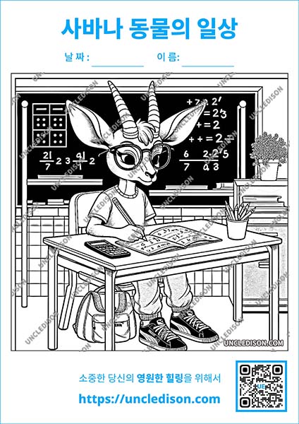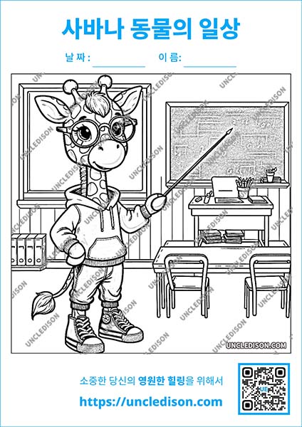 이렇게 다양한 사바나 동물들이 학교에서 생활하는 모습을 색칠하며, 아이들의 창의력을 키워보세요. 즐거운 색칠 시간이 되길 바랍니다!