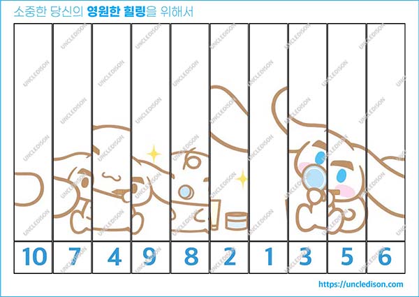 오늘은 산리오 사랑스러운 시나모롤 캐릭터들을 소개하고, 이 캐릭터들을 이용한 재미있고 교육적인 숫자 퍼즐 놀이를 소개하려고 합니다. 이 활동은 어린이와 노인 모두에게 적합하며, 숫자 인식과 매칭 기술을 기르는 데 도움이 됩니다.