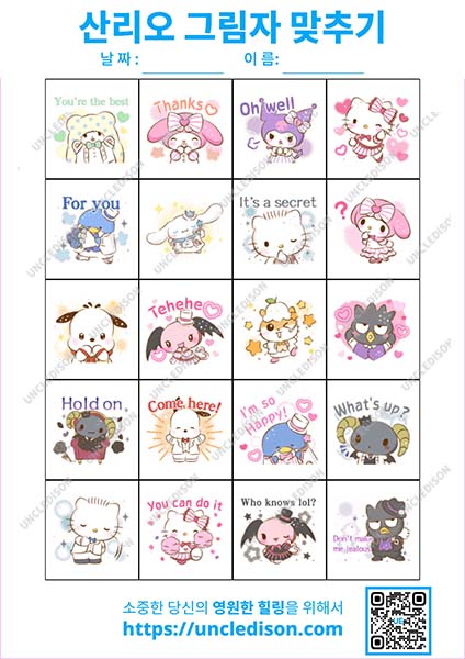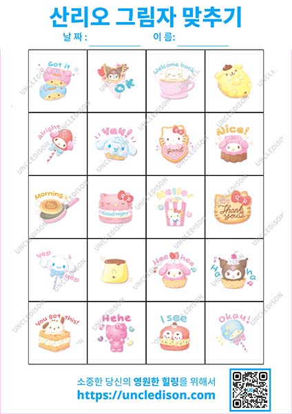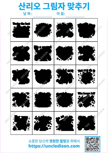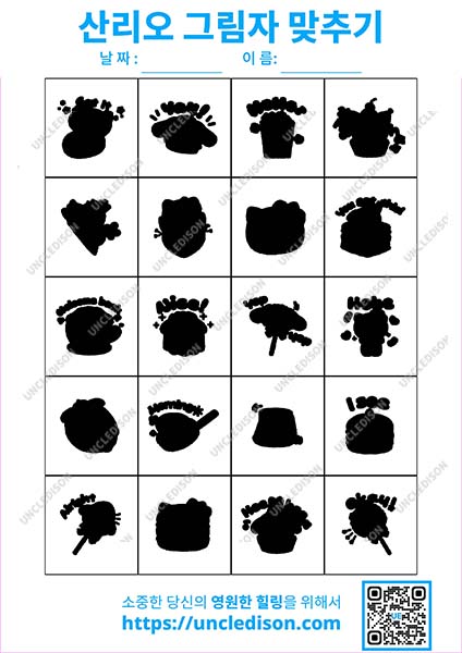 산리오 캐릭터 시나모롤 마이멜로디 쿠로미 포차코 그림자맞추기 퍼즐 도안 유아 어르신 노인 시니어 무료 프린트 인지프로그램 치매예방 활동지