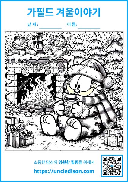 색칠도안 한 장 한 장이 마치 작은 겨울 이야기책 같아 보는 이의 마음을 따뜻하게 데워줄 것입니다. 가필드의 유머와 사랑스러운 모습, 그리고 겨울의 로맨틱한 분위기가 완벽하게 어우러진 특별한 색칠 여행에 여러분을 초대합니다! 🐱❄️🎨🖍️