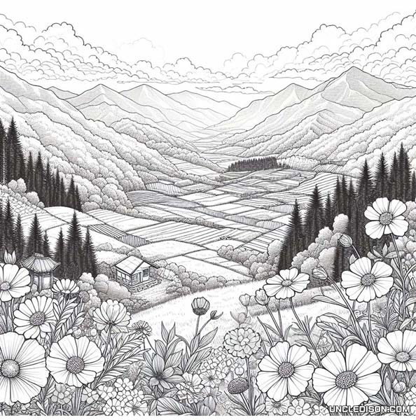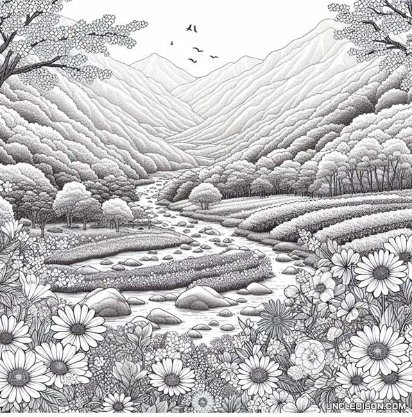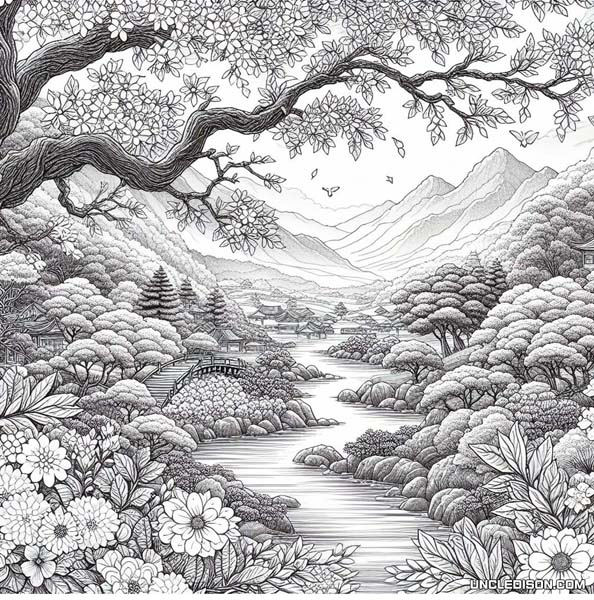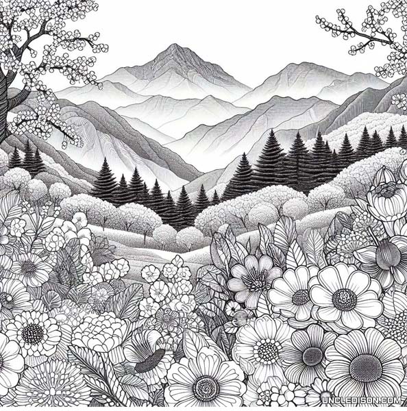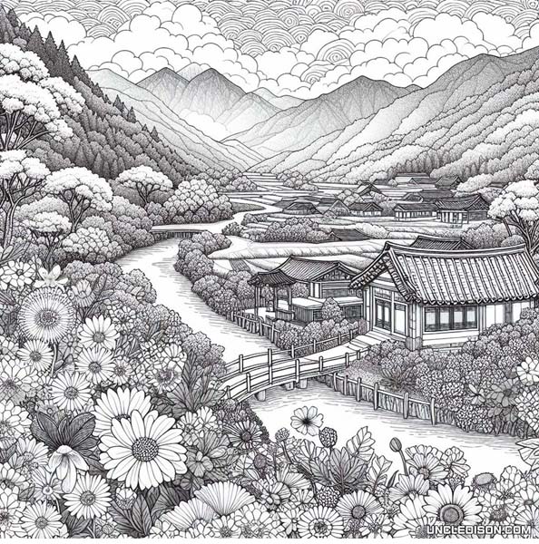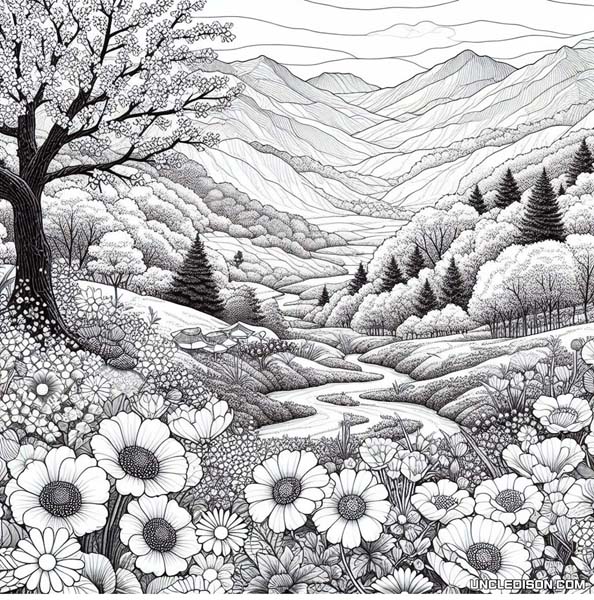 색칠공부도안 색칠하기 봄꽃 풍경 컬러링 어른 색칠공부 도안 유아 어르신 노인 성인 시니어 무료 프린트 인지프로그램 치매예방 활동지