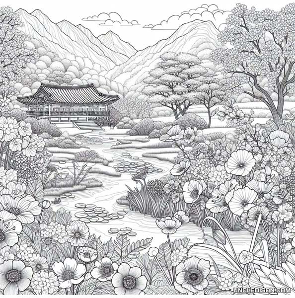 일본 정원 퍼즐 게임 도안 색칠공부도안 이미지 그림 프린트 무료다운 어르신 노인 유아 인지프