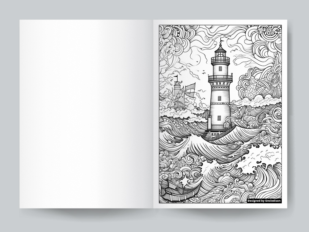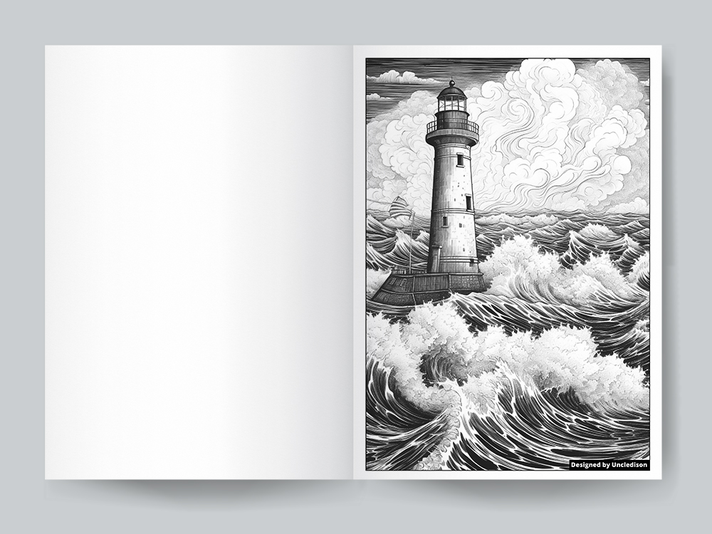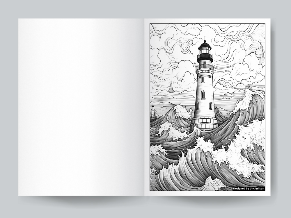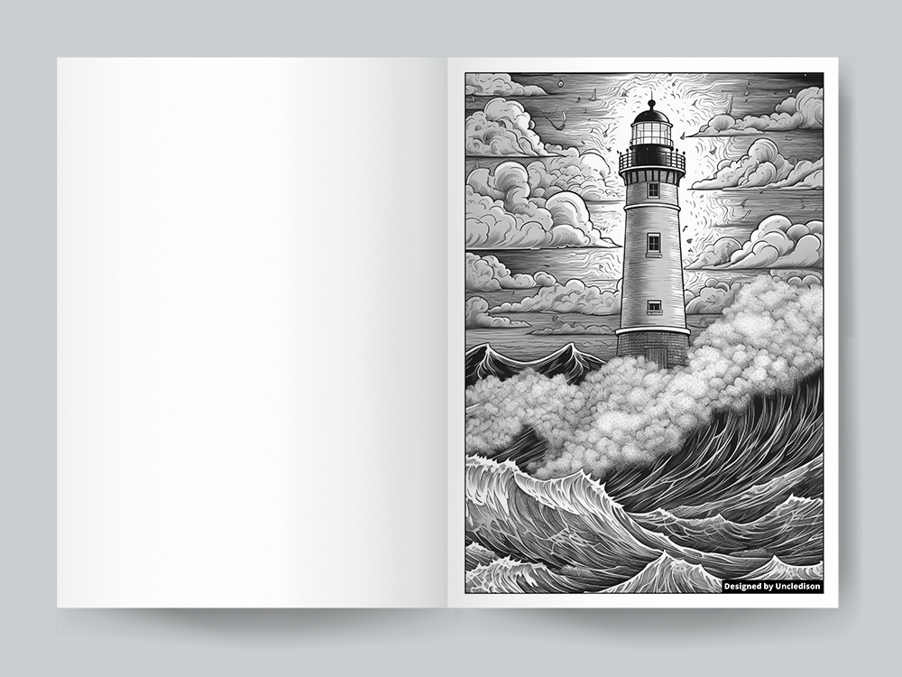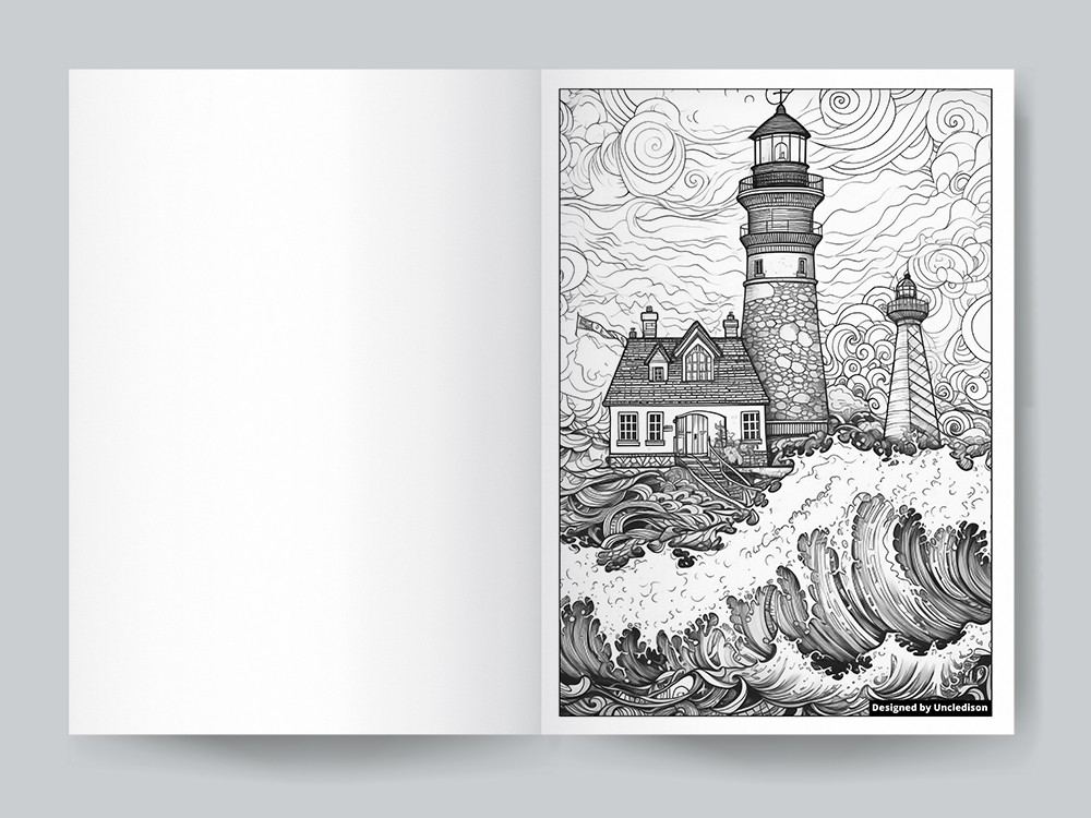 등대의 아름다움과 구르는 파도의 부드러운 리듬을 기념하는 세심하게 제작된 컬러링북 "Lighthouse Serenity"와 함께 고요함과 해안의 매력의 세계로 들어가십시오.