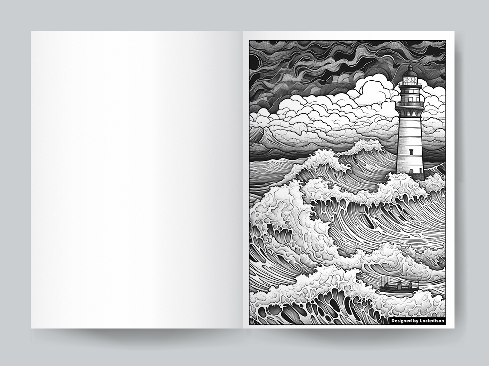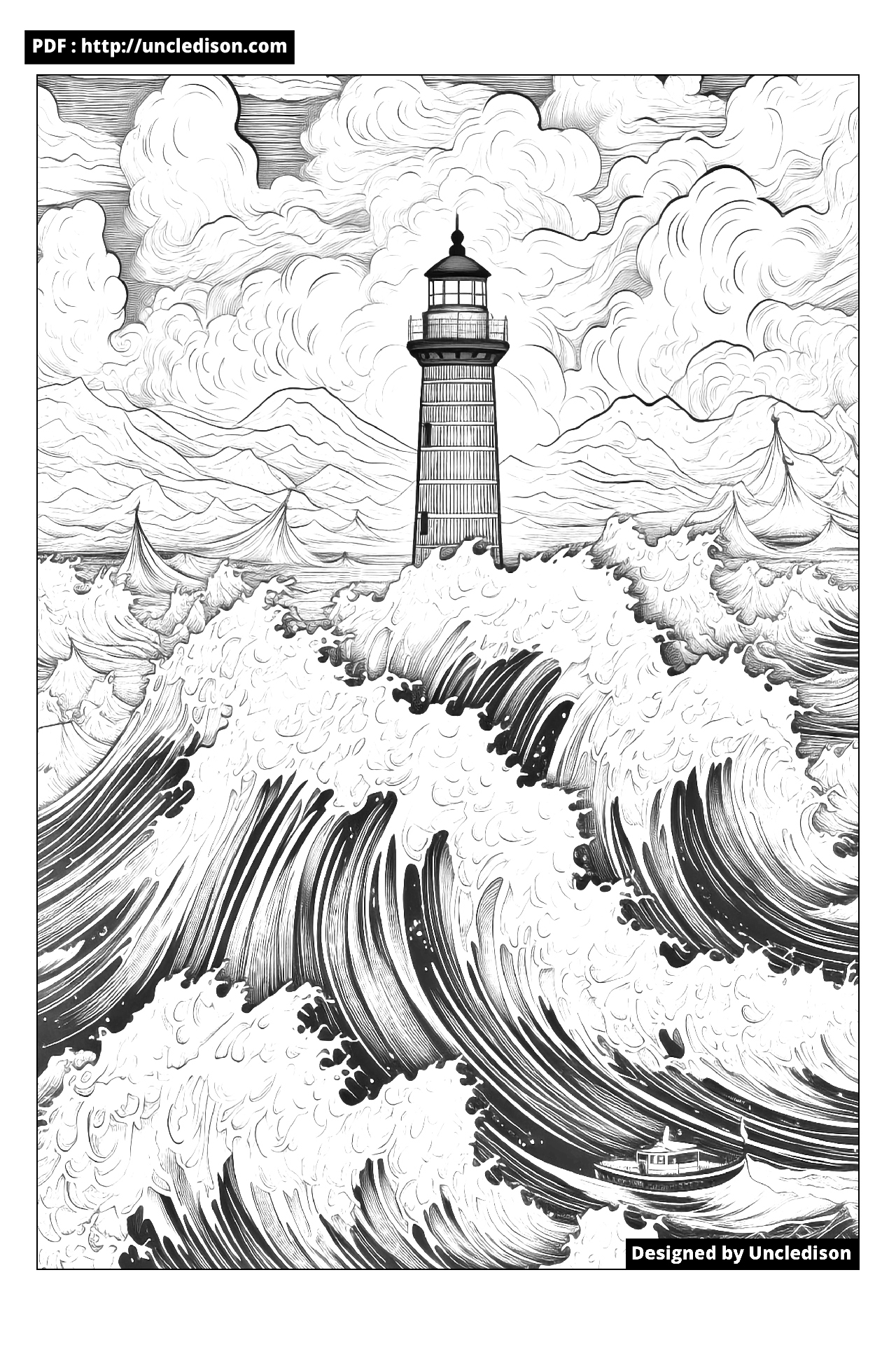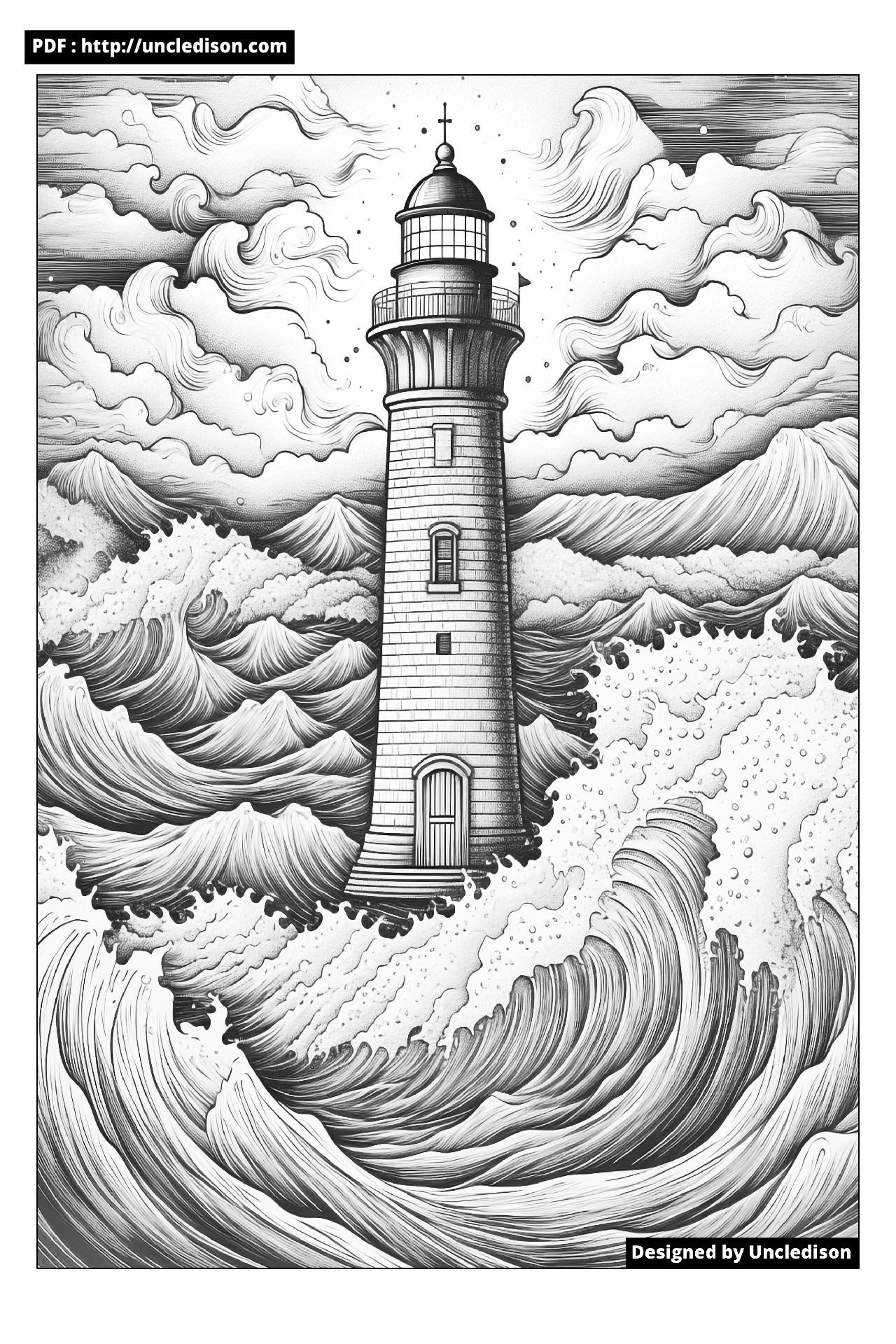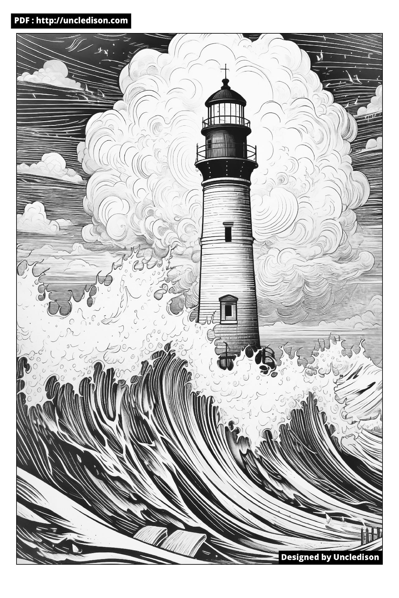 ∎ 마음챙김 여행: 등대 장면의 섬세한 선과 패턴을 탐구하고 각 스트로크에 집중하면서 고조된 마음챙김을 경험하고 현재 순간과의 고요한 일체화을 추구합니다.