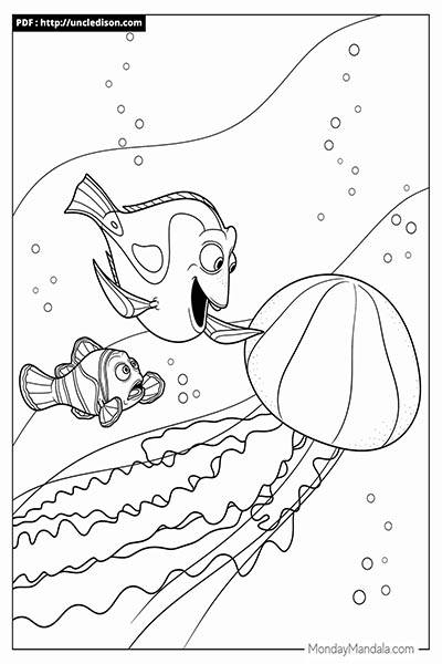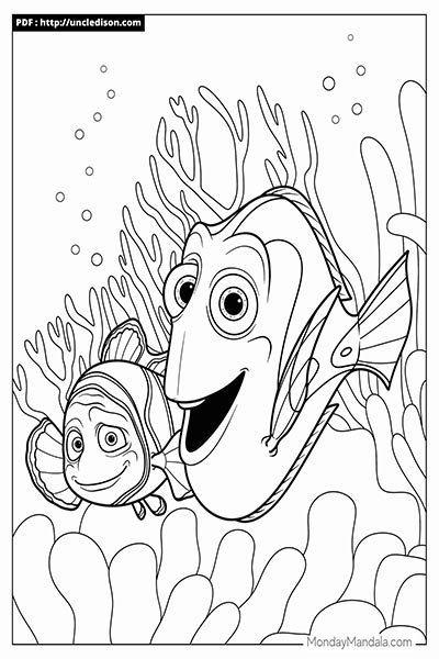 《니모를 찾아서》는 니모라는 작은 아들 물고기가 어부에게 잡혀가고, 아버지 마린이 그를 찾아가는 이야기를 그립니다. 마린은 니모를 찾기 위해 바다를 여행하면서 다양한 동물들과 만나게 됩니다. 그 중에서도 가장 도움을 주는 친구는 "도리"라는 기억력이 약한 청어입니다. 마린과 도리는 함께 모험을 하며 다양한 위험과 장애물을 극복하면서 니모를 찾아 나섭니다.