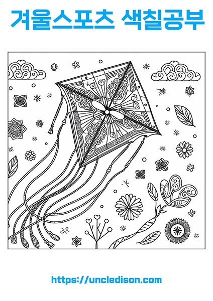 한국의 겨울은 다양한 스포츠와 활동으로 가득한 시즌입니다. 눈이 내리면서 더욱 빛나는 겨울의 매력을 느낄 수 있는데요, 이번에는 눈썰매, 얼음낚시, 얼음조각, 눈싸움 그리고 연날리기를 주제로 한 색칠도안을 준비했습니다.