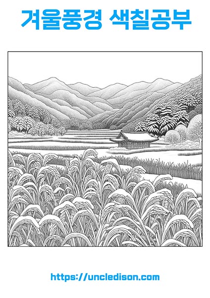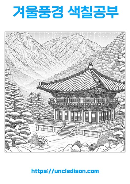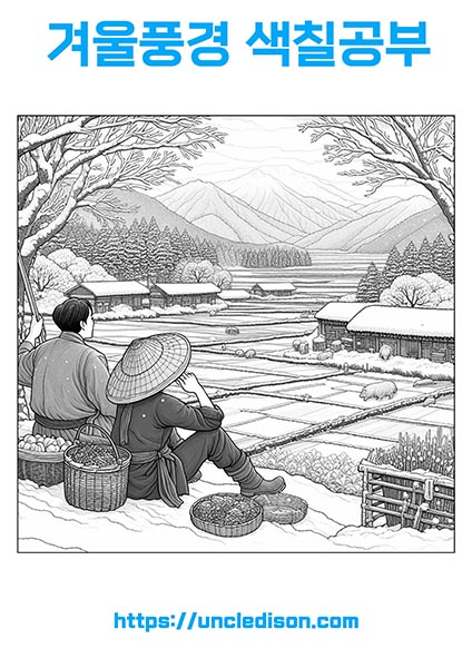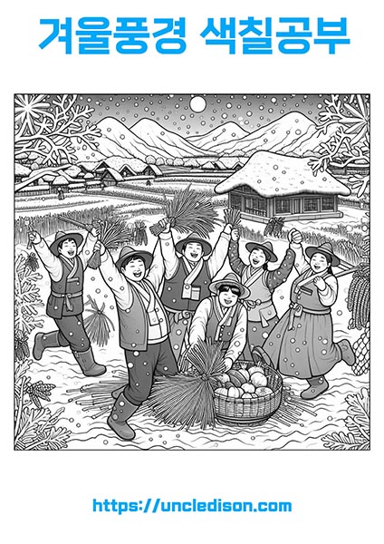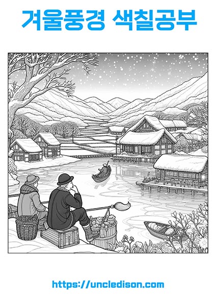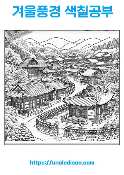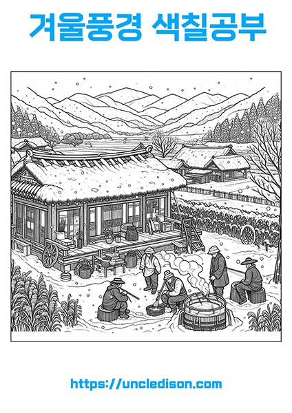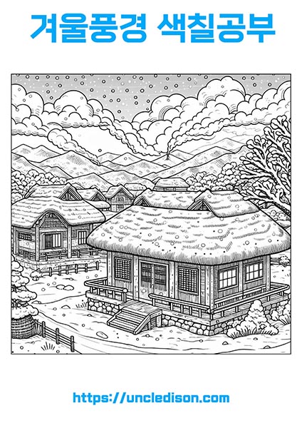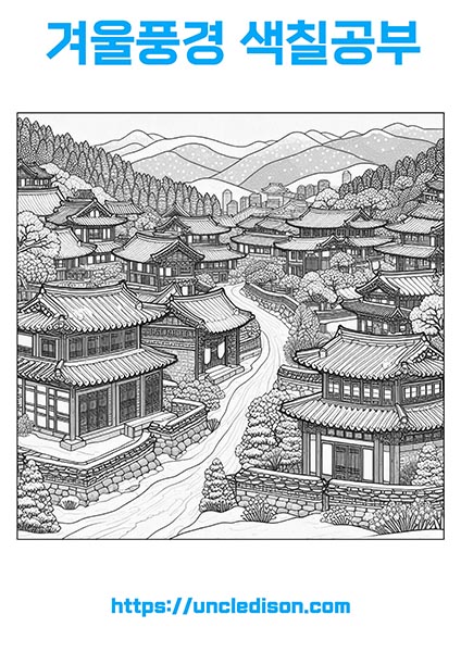 색칠공부도안 컬러링 한국 겨울풍경 이미지 색칠하기 프린트 무료다운 어르신 노인 유아 인지프