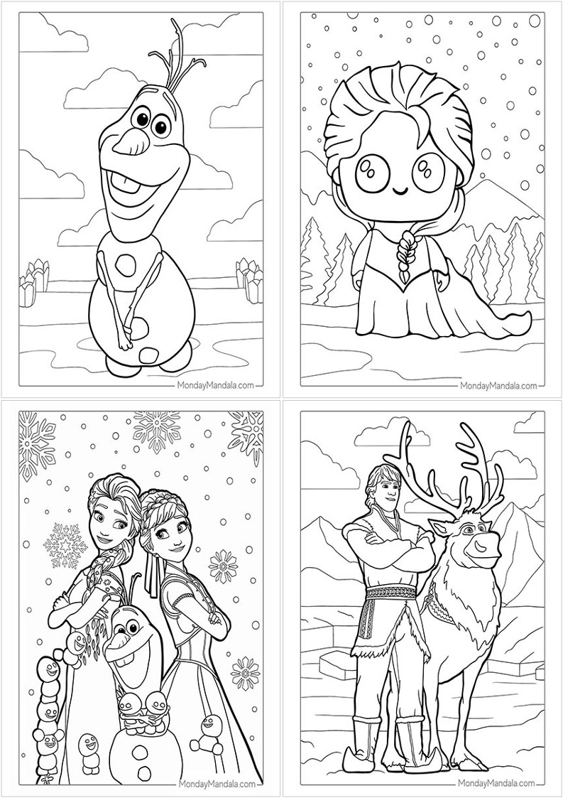 - 올라프 (Olaf): 엘사의 마법에 의해 살아나게 된 말랑말랑한 눈사람으로, 영리하고 순수한 성격을 가지고 있습니다. 더위를 좋아하며 따뜻함을 추구하는 모습이 매력적입니다.
