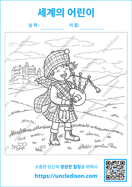 5. 스코틀랜드 – 킬트를 입은 아이 색칠도안