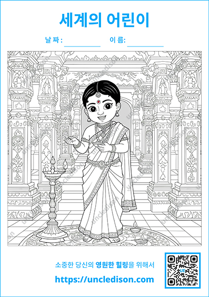 3. 인도 – 사리와 쿠르타를 입은 아이 색칠도안