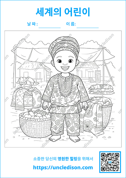 7. 나이지리아 – 앙카라 옷을 입은 아이 색칠도안