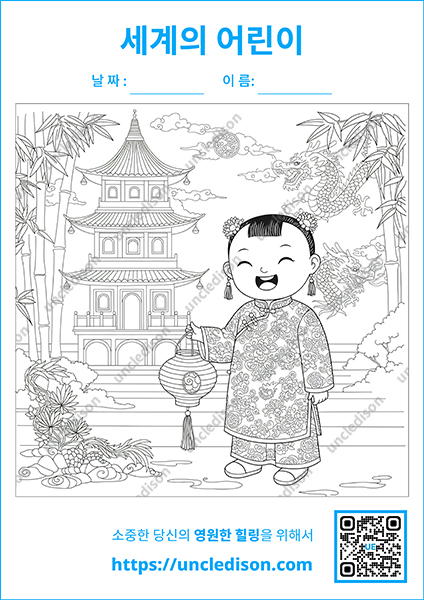 4. 중국 – 치파오를 입은 아이 색칠도안