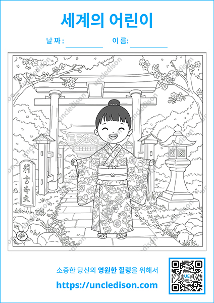 2. 일본 – 기모노를 입은 아이 색칠도안