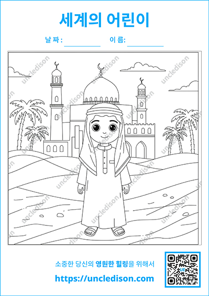 9. 사우디아라비아 – 토브와 아바야를 입은 아이 색칠도안