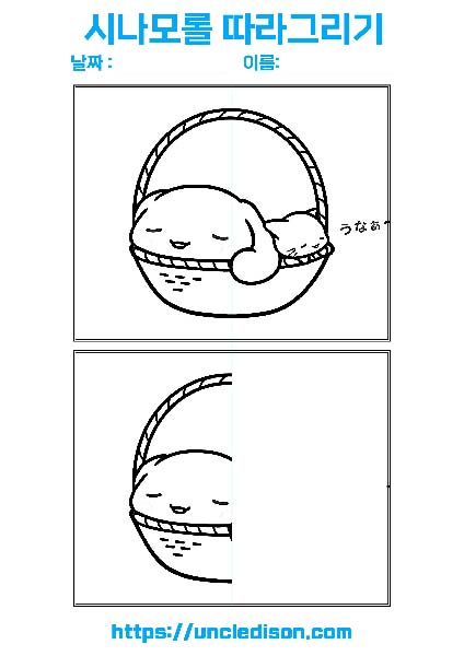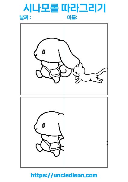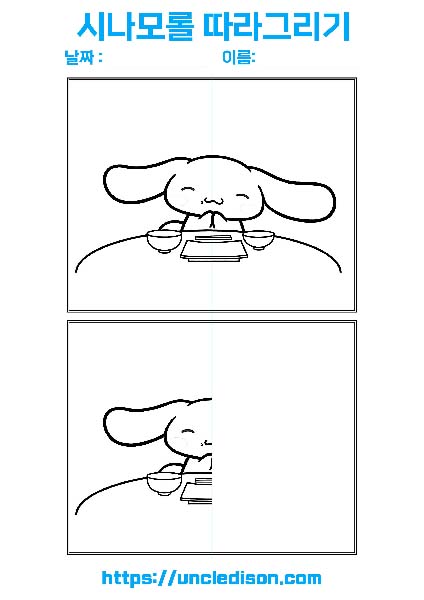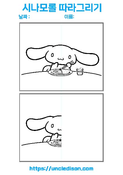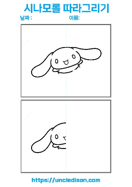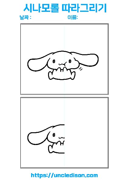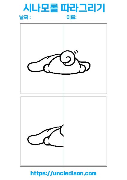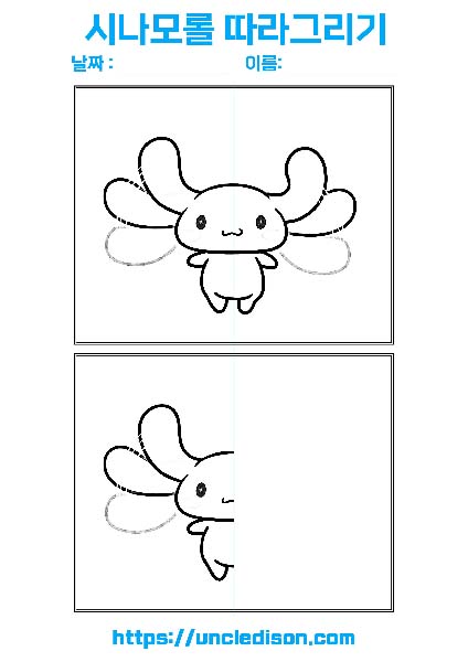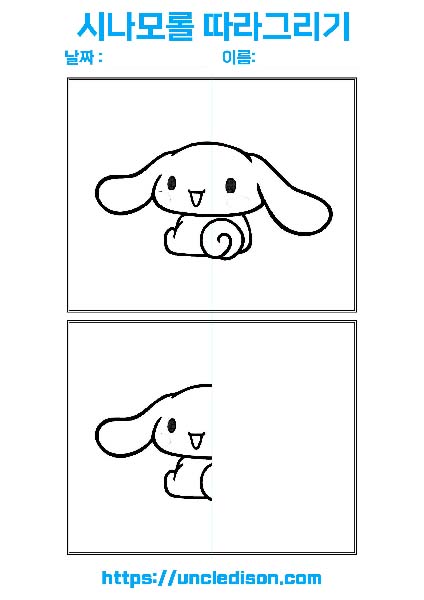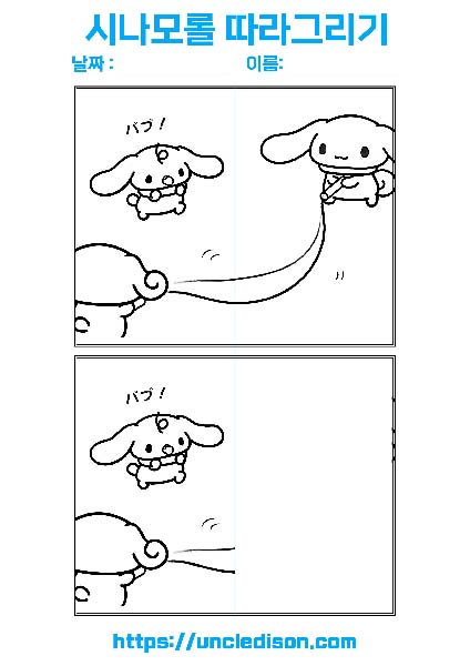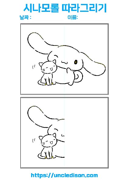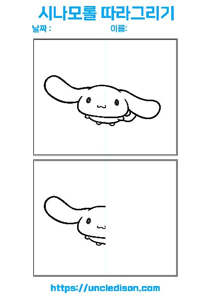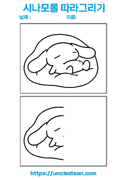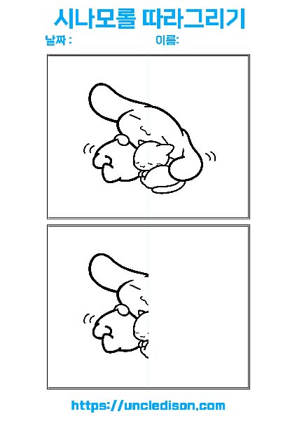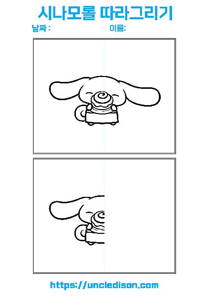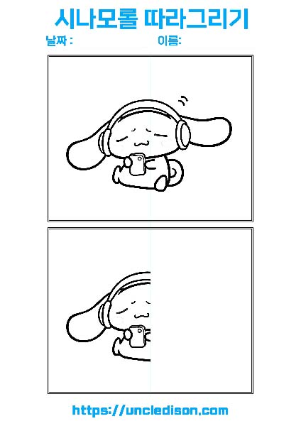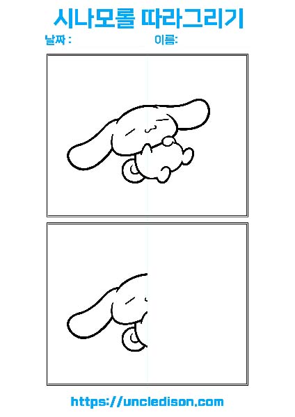 시나모롤 따라그리기 도안에는 귀엽고 심플한시나모롤의 이미지가 포함되어 있습니다. 총 68장의 도안이 업로드되어 있어, 유아나 어르신들도 쉽게 따라그리고 색칠까지 하실 수 있습니다. 시나모롤 색칠공부도안