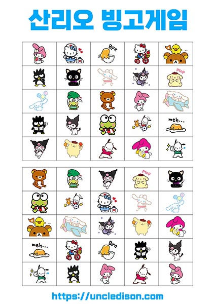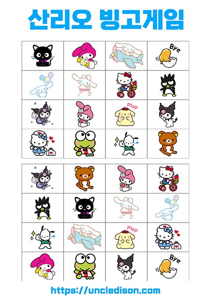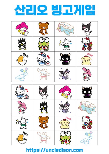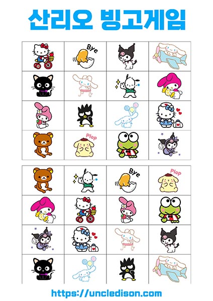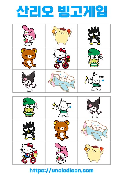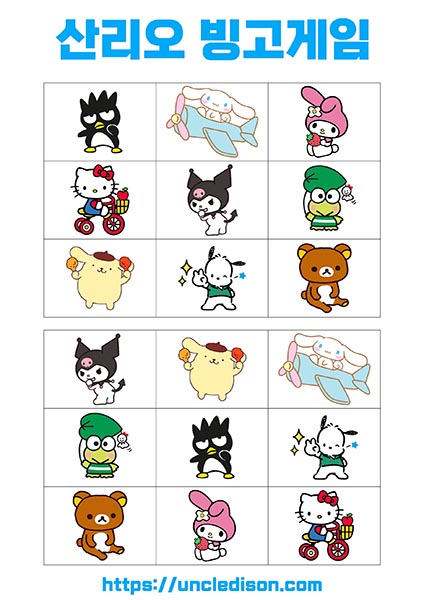 산리오 빙고게임 도안