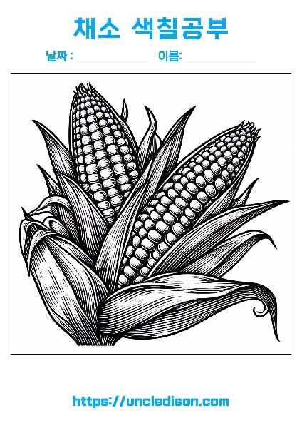 겨울 음식 한국의 구황작물은 겨울철에 재배되는 작물들로 추운 계절에도 잘 자라며, 쌀이 귀했던 예전에는 특히 중요한 주요 먹거리였습니다. 이번 색칠도안에는 구황작물인 옥수수, 감자, 고
