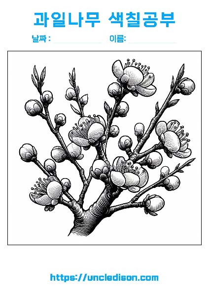 봄꽃 모음 개나리 목련 벚꽃 유채꽃 진달래 어른 색칠공부 도안 유아 어르신 노인 성인 시니어 PD