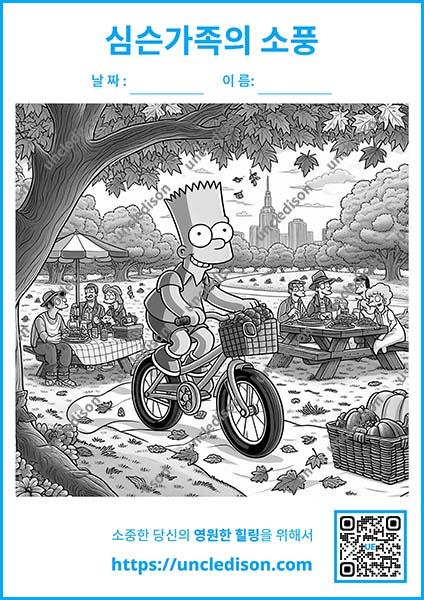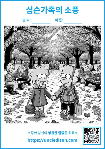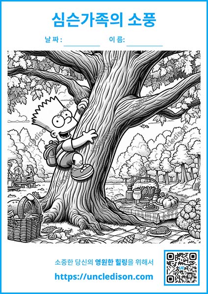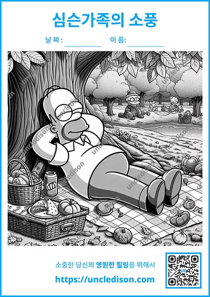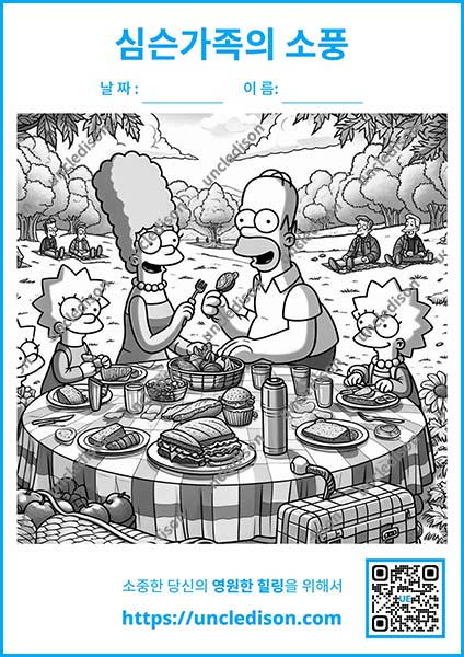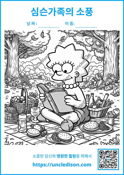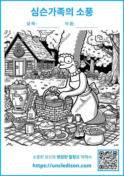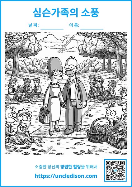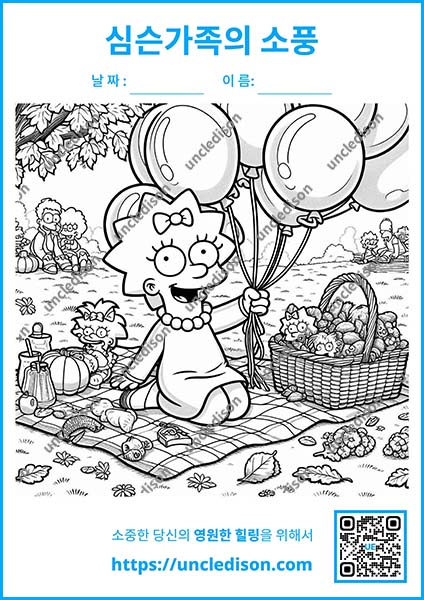 여러분의 상상력으로 이 즐거운 순간들을 더욱 특별하게 만들어보세요. 원하는 색으로 마음껏 칠하면서 심슨 가족과 함께 행복한 가을 피크닉을 즐겨보는 건 어떨까요? 🎨✨